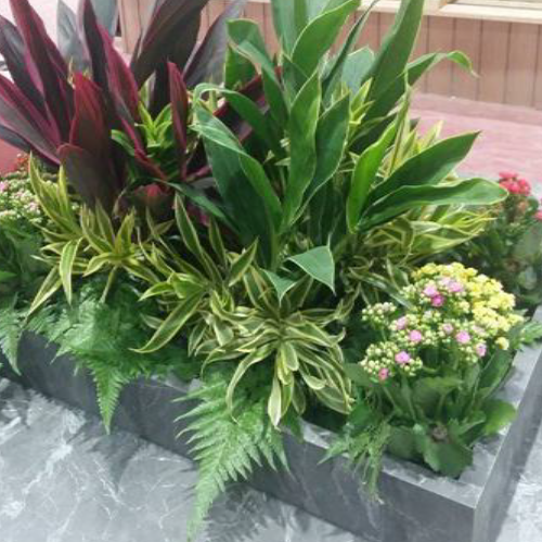 Mixed Fresh Flower and Cut Leaves Arrangement